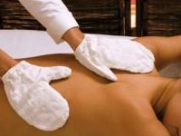 A dry lymphatic skin brushing with either a wool or silk glove. This enhances circulation and cleanses the skin so that subsequent oil and herbal treatments can penetrate deeply into freshly cleansed pores.